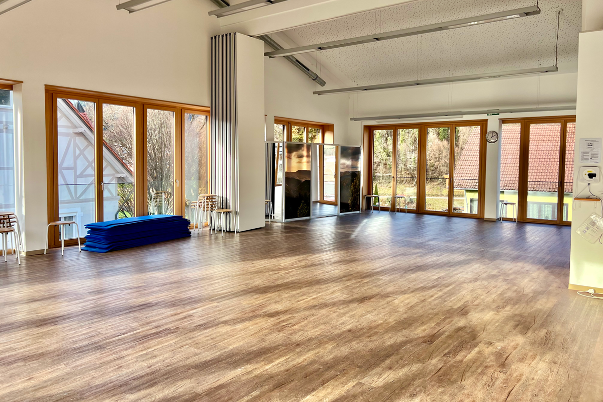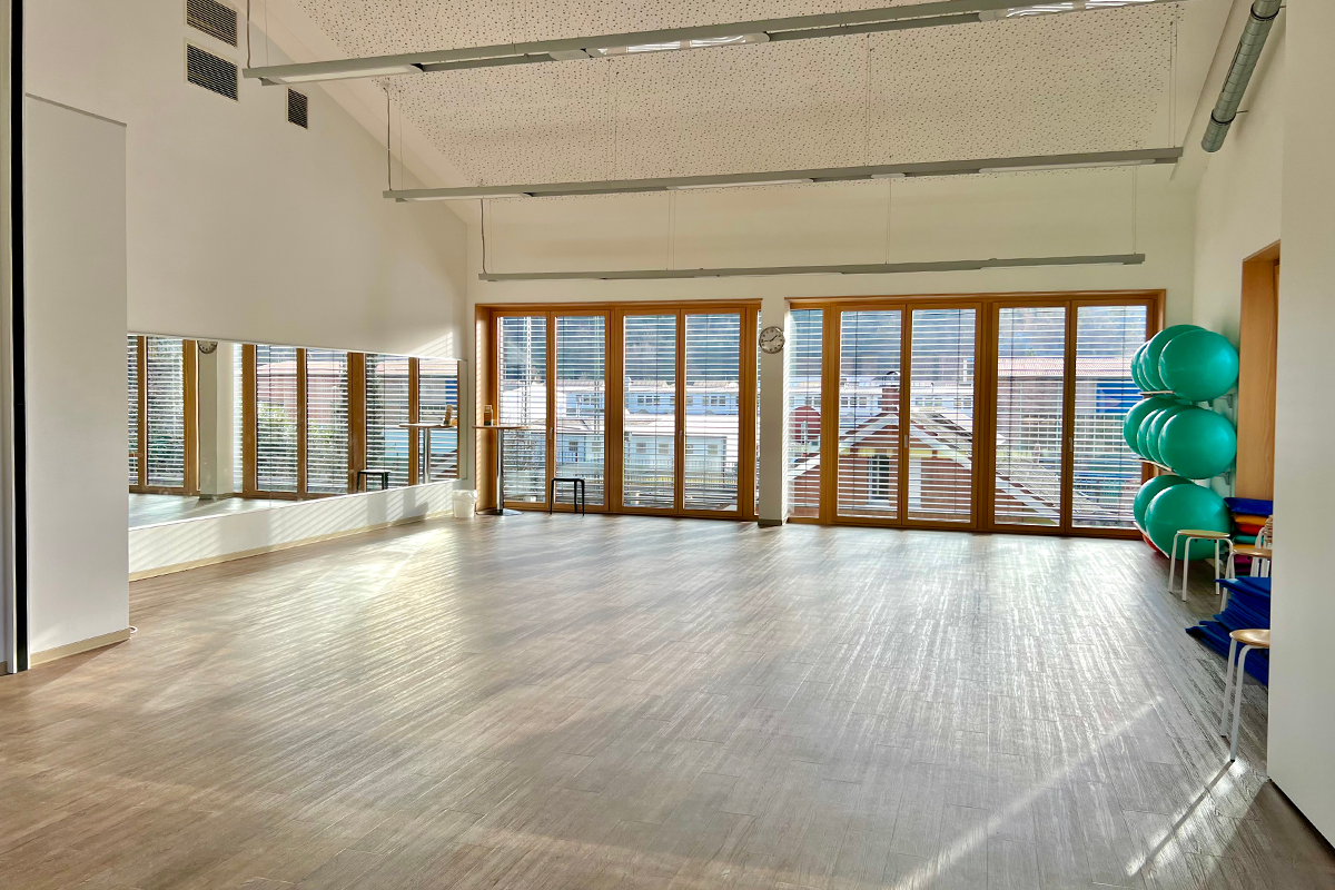 Entdecken Sie einen Ort, der Bewegung, Begegnung und Gesundheit vereint: Auf über 125 Quadratmetern erwartet Sie ein hochwertig ausgestatteter Multifunktionsraum mit Sportboden, Spiegelwand, viel Tageslicht und Panoramablick in drei Himmelsrichtungen.