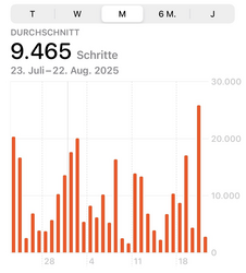 Der Schrittzähler eines I Phones gibt beispielsweise folgende Übersicht: