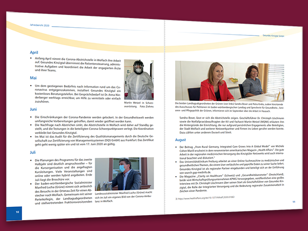 Das Jahr 2020 wird in vielen Unternehmen als außergewöhnliches Jahr in die Bücher eingehen. Das gilt auch für die GESUNDES KINZIGTAL GmbH. Das Besondere: Durch die Einschränkungen, die mit der Pandemie verbunden sind, wurden zwar viele Vorhaben ausgebremst oder verhindert, andererseits hat GESUNDES KINZIGTAL in Zusammenarbeit mit vielen Partnern neue Projekte und Herausforderungen annehmen und erfolgreich verfolgen können. Für uns hat sich gezeigt, dass jede Krise auch eine Chance beinhaltet.