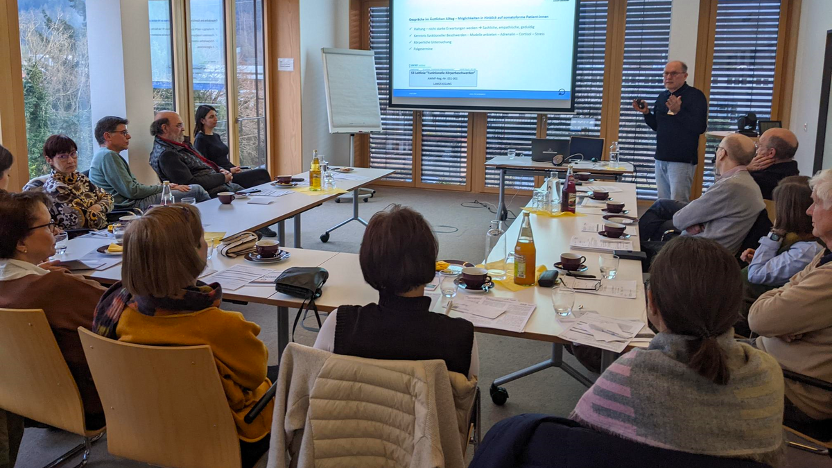 Die Informations- und Fortbildungsveranstaltung, eine gemeinsame Aktion von GESUNDES KINZIGTAL, dem MQNK e.V. und der rGV Kinzigtal eG, hatte zwei Schwerpunkte. Zum einen ging es um die Neu-Aufstellung der GESUNDES KINZIGTAL GmbH aufgrund des aktualisierten Vertrags mit der AOK Baden-Württemberg. Im zweiten Teil stellte Prof. Dr. Andreas Joos, Chefarzt der Klinik für Psychosomatische Medizin und Psychotherapie am Ortenau-Klinikum in Lahr, die Bedeutung der biopsychosozialen Medizin im Praxisalltag vor.
