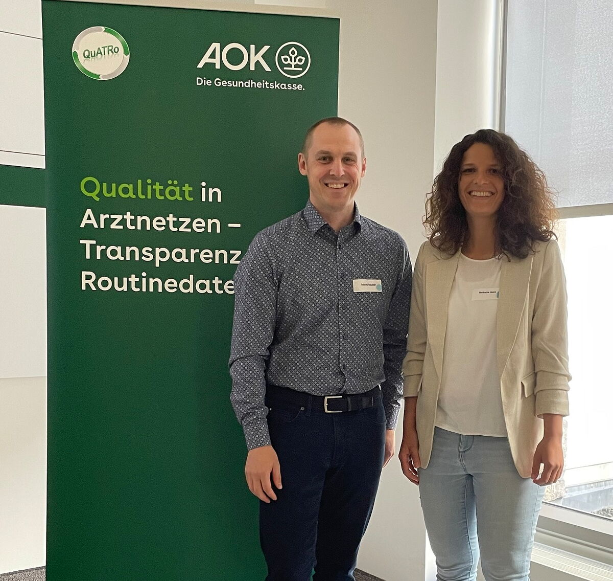 Beim AOK QuATRo-Workshop in Berlin konnten Nathalie Haas (Qualitäts- und Projektmanagement Besondere Versorgung, Gesundes Kinzigtal GmbH) und Tobias Rauber (Leitung Geschäftsbereich Versorgung, AOK Südlicher Oberrhein) neue Perspektiven aus Praxis und Versorgung kennenlernen und die eigene Expertise einbringen.