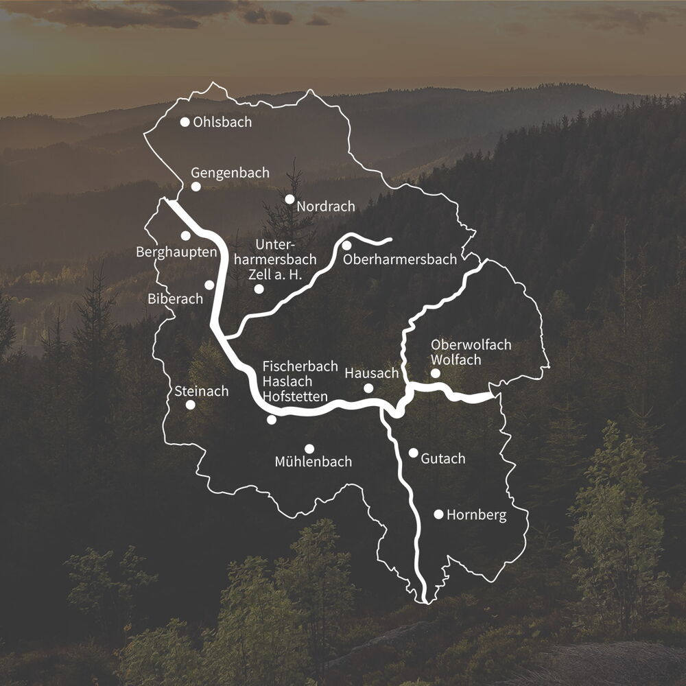 Das Versorgungsgebiet von GESUNDES KINZIGTAL entspricht ungefähr der Region, die als Mittleres Kinzigtal bezeichnet wird und liegt komplett im Ortenaukreis. Es reicht von Ohlsbach im Westen über Gengenbach und Biberach mit dem Harmersbachtal über Haslach und Hausach ins Wolftal bis an die Landkreisgrenze, an der Gutach entlang bis Hornberg-Niederwasser.